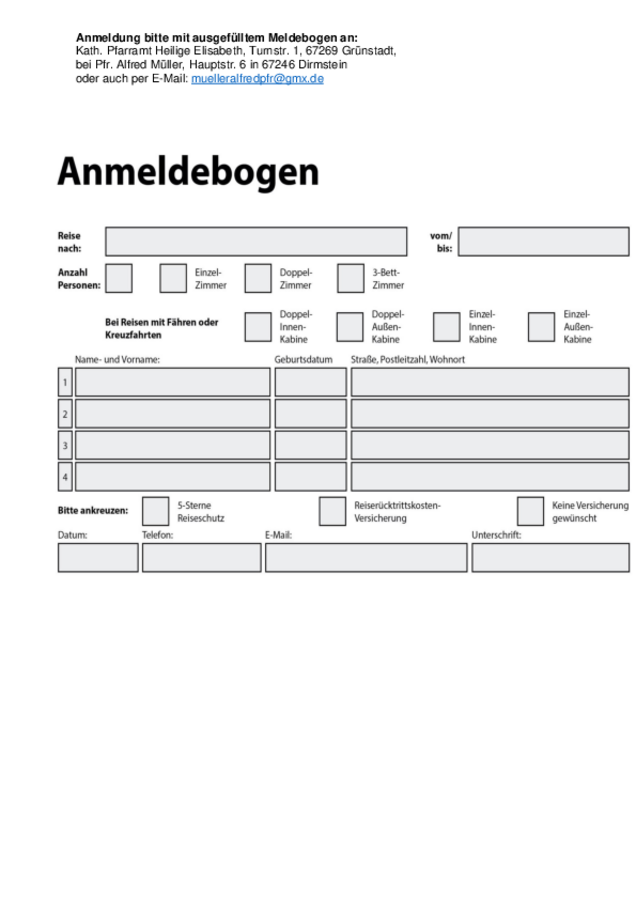 Anmeldung bitte mit ausgefülltem Meldebogen an: