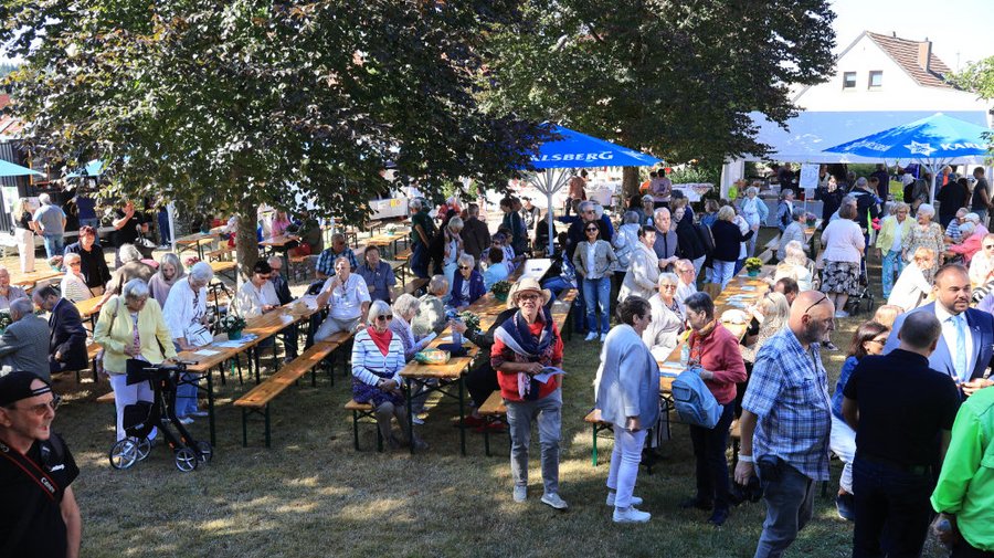 Mit einem Stand, den der AK Eine Welt betreute, und parallelem Waffelverkauf der Messdiener*innen sowie einem stündlichen Angebot in der Kirche St. Joseph waren wir im wahrsten Sinne des Wortes mittendrin im Treiben des Biosphärenfestes. Die Kirche wurde als Ort für einen einen Moment der Ruhe, Kühlung und Entspannung mitten im geschäfigen Treiben gut wahrgenommen. Der Hauptschauplatz mit der Bühne lag in unserem Kirchgarten. Die Bäume spendeten natürlichen Schatten und Kühlung. Der Baum war auch zentrales Motiv des ökumenischen Gottesdienstes, den der Chor Auftakt und der Musikverein Limbach mit ihren musikalischen Beiträgen bereicherten. Nach vorsichtigen Schätzungen waren ca. 15.000 Menschen zu Gast, um sich über das vielfältige Angebot in der Biosphäre Bliesgau zu informieren.