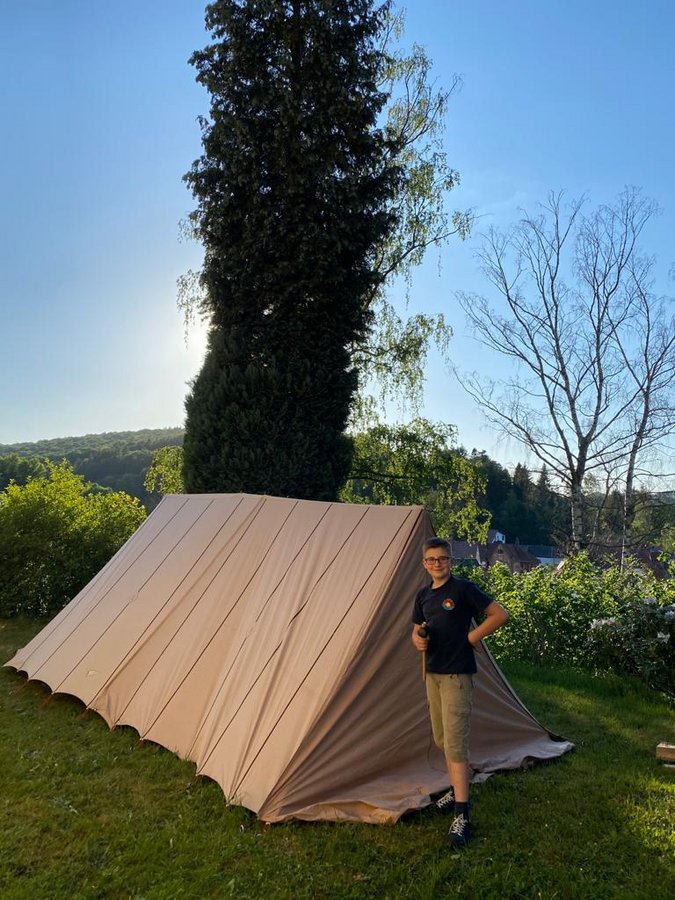 Was machen Pfadfinder an Pfingsten? Natürlich ein Pfingstzeltlager. In Zeiten von Corona ist dies jedoch aus diversen Gründen eine zu große Herausforderung an viele Teams, die in den vergangenen Jahren diese Zeltlager mit viel Liebe aber auch hohem logistischem Aufwand organisiert haben. Und so kam, was kommen musste. Wie die Sommerfreizeiten, die zeitlich sogar noch eine Weile weiter weg liegen, wurden vielerorts auch die Pfingstlager abgesagt. Das Risiko einer erneuten Ansteckungswelle ist vielen noch zu groß. Also kein Pfingstlager, oder fast keins. Denn so ganz will, oder kann ein waschechter Pfadfinder auf die unmittelbare Berührung mit der Natur nicht verzichten. Das haben sich auch die Georgspfadfinder in Niederwürzbach gedacht. Als Alternative zum großen Pfingstlager luden die Pfadfinderstämme deshalb dazu ein das Zelt im eigenen Garten aufzubauen und kurzerhand dort zu zelten. Im Kreis der eigenen Familie, oder alleine. Wer wollte konnte davon ein Bild schicken. So entstand doch irgendwie ein großes, aber dezentrales Pfingstlager mit allem drum und dran: Schlafen unter freiem Himmel oder im Zelt, Wanderungen, grillen, Lagerfeuerromantik.