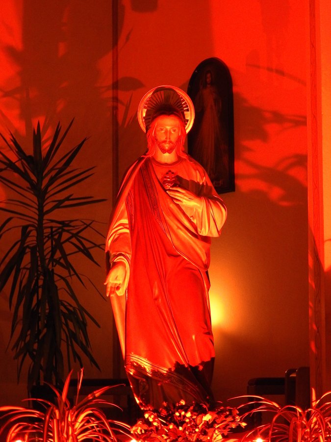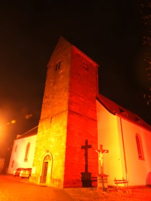 Gestern, am 1. Adventssonntag, dem 28. November, eröffneten wir in St. Barbara Blickweiler um 21 Uhr mit dem monatlichen Friedensgebet für Friede, Gerechtigkeit und Versöhnung die Woche für verfolgte Christen mit Ausleuchtung der St. Barbarkirche in Rot.