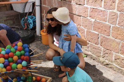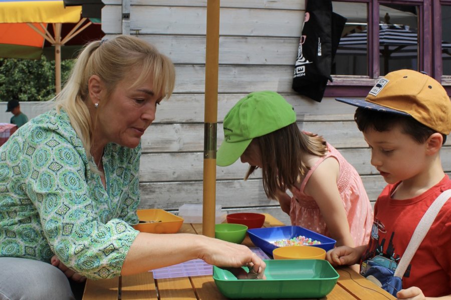 Im Anschluss fiel der Startschuss für ein buntes Spiel- und Mitmachprogramm: Ob Riesenmikado, Schatzsuche im nassen Murmelbad, lustige Fotostation mit übergroßem Bilderrahmen, Zielwerfen, Ringwurf oder kreatives Armbänderbasteln mit bunten Perlen – für jeden Geschmack war etwas dabei. Auch der Sandbereich und der Spielplatz wurden ausgiebig genutzt. Eltern und Kinder genossen einen kurzweiligen, fröhlichen Nachmittag in entspannter Atmosphäre.