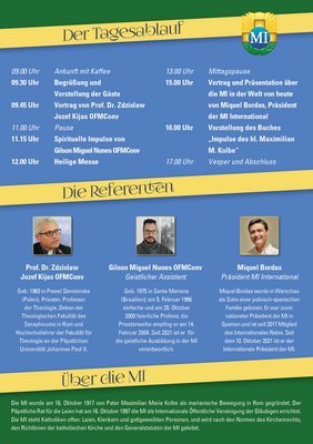 Wir möchten sie ganz herzlich zu diesem Symposium einladen, zu dem auch ein sehr versierter Kenner, Prof. Kijas aus Rom, eingeladen wurde und der uns interessante Aspekte über die Person Maximilian Kolbe, seinen Lebensweg und vor allem seine Spiritualität näher bringen kann.
