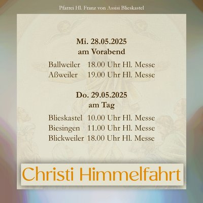 Mi. 28.05.Christi Himmelfahrt am Vorabend