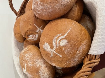 Jeder Gottesdienstbesucher bekam am Ende des Gottesdienstes eine Rose und ein Brot mit unserem Pfarreilogo zur Erinnerung an die Hl. Elisabeth geschenkt.