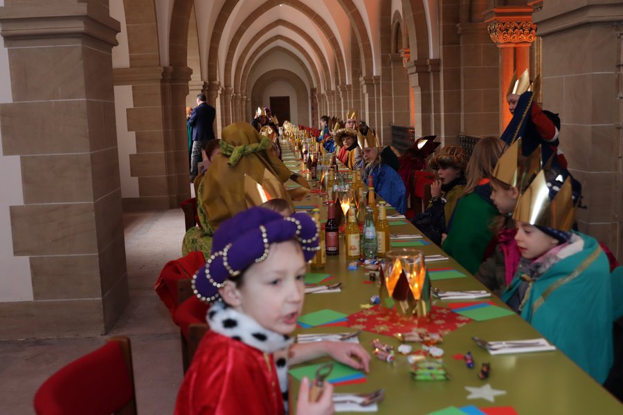 Im Anschluss an den zentralen Dankgottesdienst am Sonntag, 14. Januar, waren alle Sternsinger*innen unserer Pfarrei zum königlichen Mahl auf die Galerie der Marienkirche eingeladen.