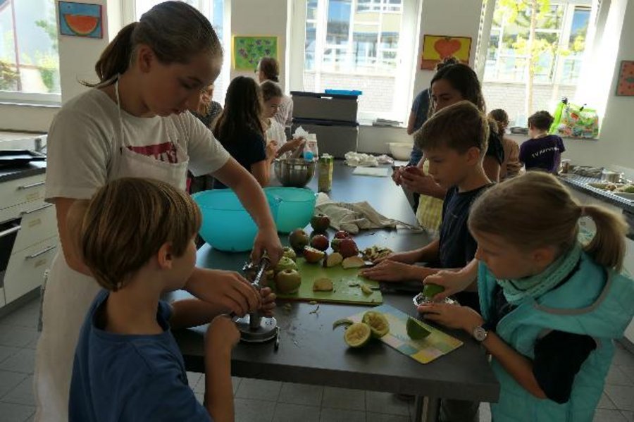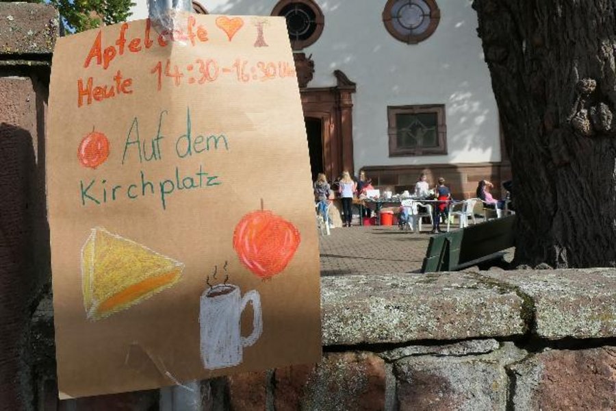 Am 23.9.2023 gab es dann eine Premiere in Kirrweiler. Dank vieler Nachwuchsbäcker- und Nachwuchsbäckerinnen entstand am Nachmittag das erste „Pop-up-Apfelcafé“ auf dem Kirchenvorplatz, bei dem verschiedene leckere Apfelkuchen, die vormittags in der Schulküche entstanden sind, verkostet werden konnten. Alle erhielten viel Lob von den Besuchern des Cafés, welche nicht nur aus Eltern bzw. Omas und Opas der Nachwuchsbäcker/innen bestanden.
