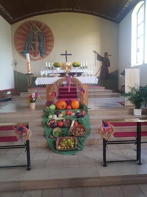 Es ist eine schöne Tradition, den Erntedank in unseren Kirchen zu feiern. Auch in diesem Jahr wurden die Altarräume mit viel Engagement und Kreativität geschmückt. Ein herzliches Dankeschön allen Frauen und Männern, die dabei halfen und ihre Gaben spendeten. Bei aller Dankbarkeit für das, was wir so reich empfangen, wurde in den Gottesdiensten auch unsere Verantwortung für die Schöpfung in den Blick genommen und die Menschen, denen es nicht so gut geht wie uns.