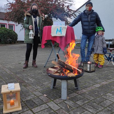 Aufgrund der Pandemiebedingungen gab es in diesem Jahr keinen großen Gottesdienst und das Friedenslicht konnte an vier Verteilorten im Bistum abgeholt werden. Unser Friedenslicht wurde in Lachen-Speyerdorf geholt. Annika Marmont und Klaus Schoppe verteilten vor St. Albert das Friedenslicht an einem kleinen Lagerfeuer, in St. Maria gaben Gemeindereferent Artur Kessler und Benedikt Ockel in der violett illuminierten Kirche das Licht weiter. Dekan Axel Brecht sprach zu Beginn ein Gebet und an beiden Orten gab es Impulstexte “to go”.